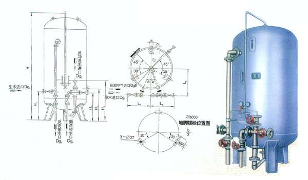 SZB系列压力式机械过滤器,经过滤后的出水浊度在5mg/L以下,是电渗析装置、离子交换装置的必用前处理设备,也是一般生活用水的给水处理主要单元设备,如再配以消毒即可成为符合饮用水标准的自来水,是各乡镇小型工矿企业以河水或井水作为水源的良好净水处理设备。本设备也可作为工业废水回用装置以利节约用水。本设备采用钢板制成,坚固耐用。滤层结构有双层或单层滤料,具有投资少,占地面积小,效果好,使用管理方便等优点。为延长使用寿命和水质、质量,尽可能考虑采用不锈钢制造。