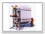 超滤装置是一种能将溶液进行净化分离的膜透过设备,通常截留的溶质分子量在500-500000之间。通过国家鉴定的中空纤维超滤装置,其超滤膜呈中空毛细管状,管壁密布微孔,原水或需要处理的溶液在压力下通过管内流动,水及小分子溶质过膜壁成为超滤液,大分子物质成为浓缩液被截留排出,从而达到纯化和分离的目的。